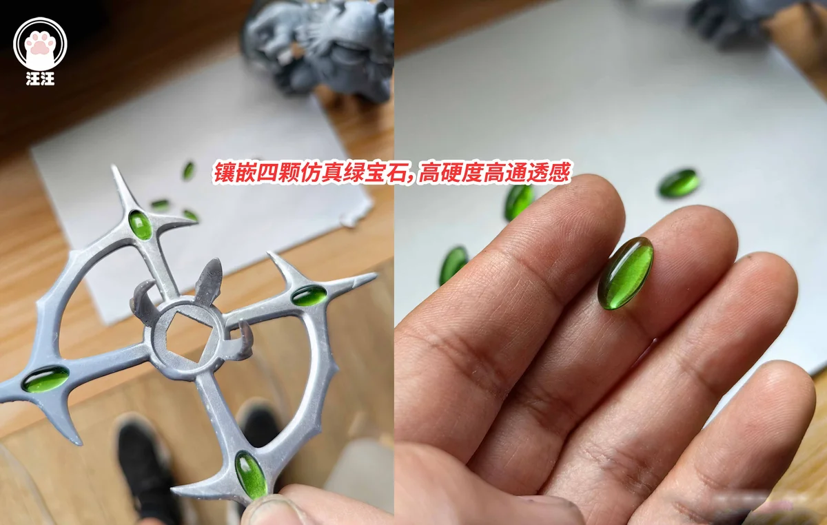- Inlaid with four simulated emeralds, high hardness and high transparency.