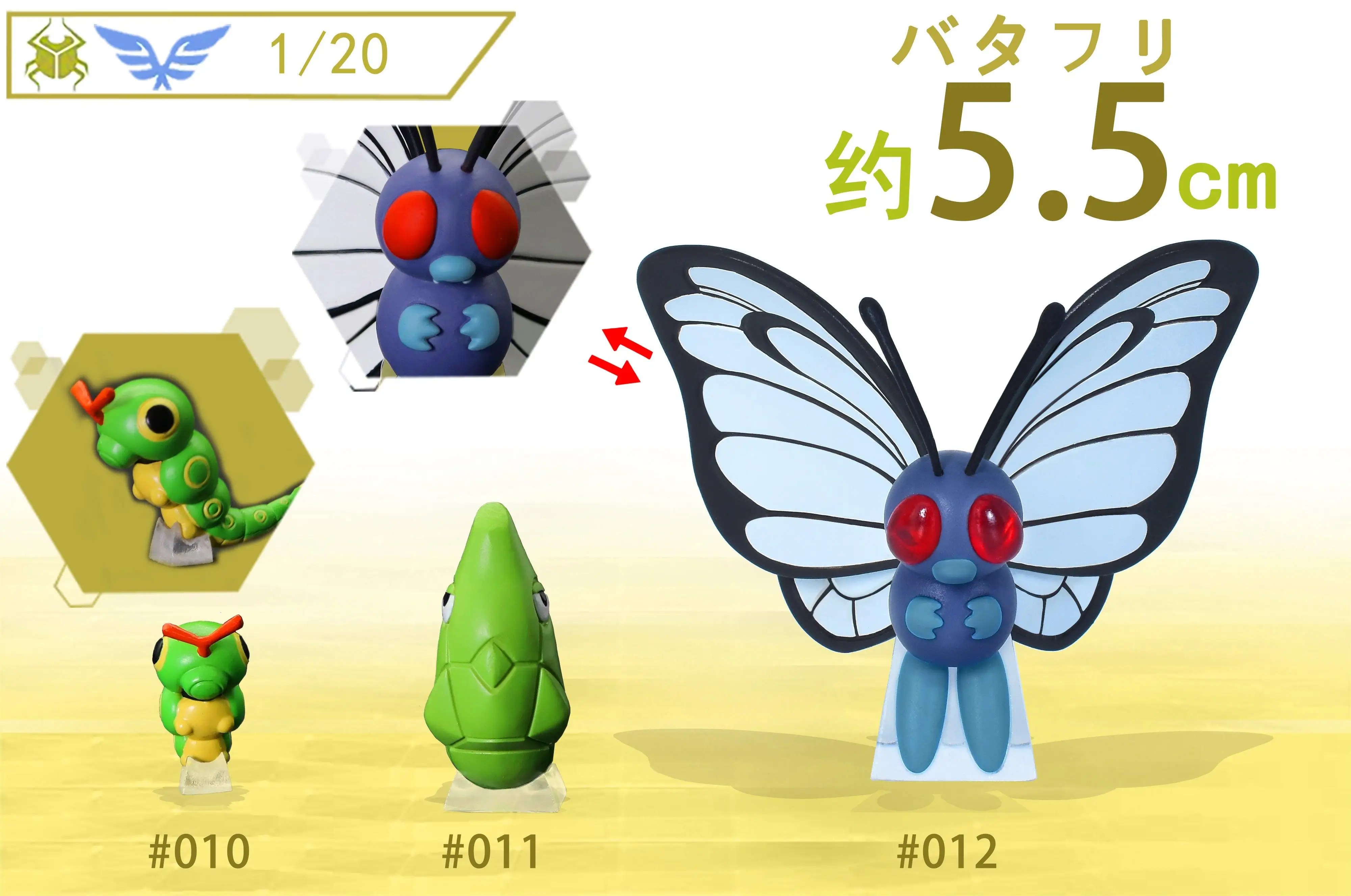 - Butterfree Set (Butterfree, Metapod & Caterpie):Will giveaway an arm by Ash Ketchum, collect for another 4 sets 1/20 zukan and get the other part of Ash Ketchum. (At the end can be one complete Ash Ketchum, as shown as P15)