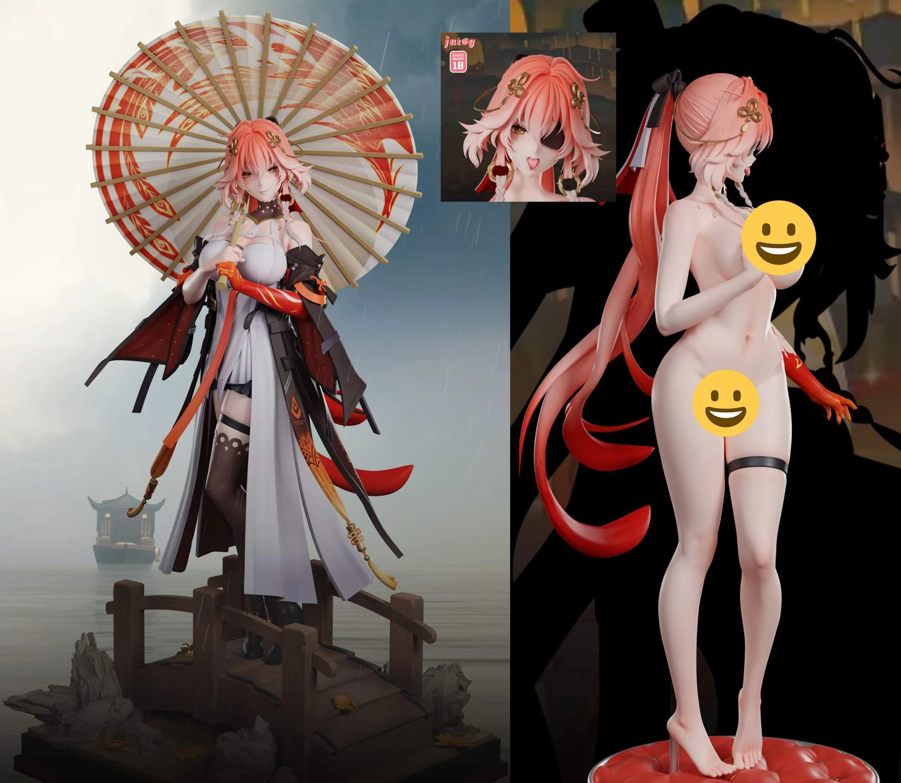 1. Standard Version : Customized Head Craving + Character’s Body + Umbrella + Wooden Bridge Base.