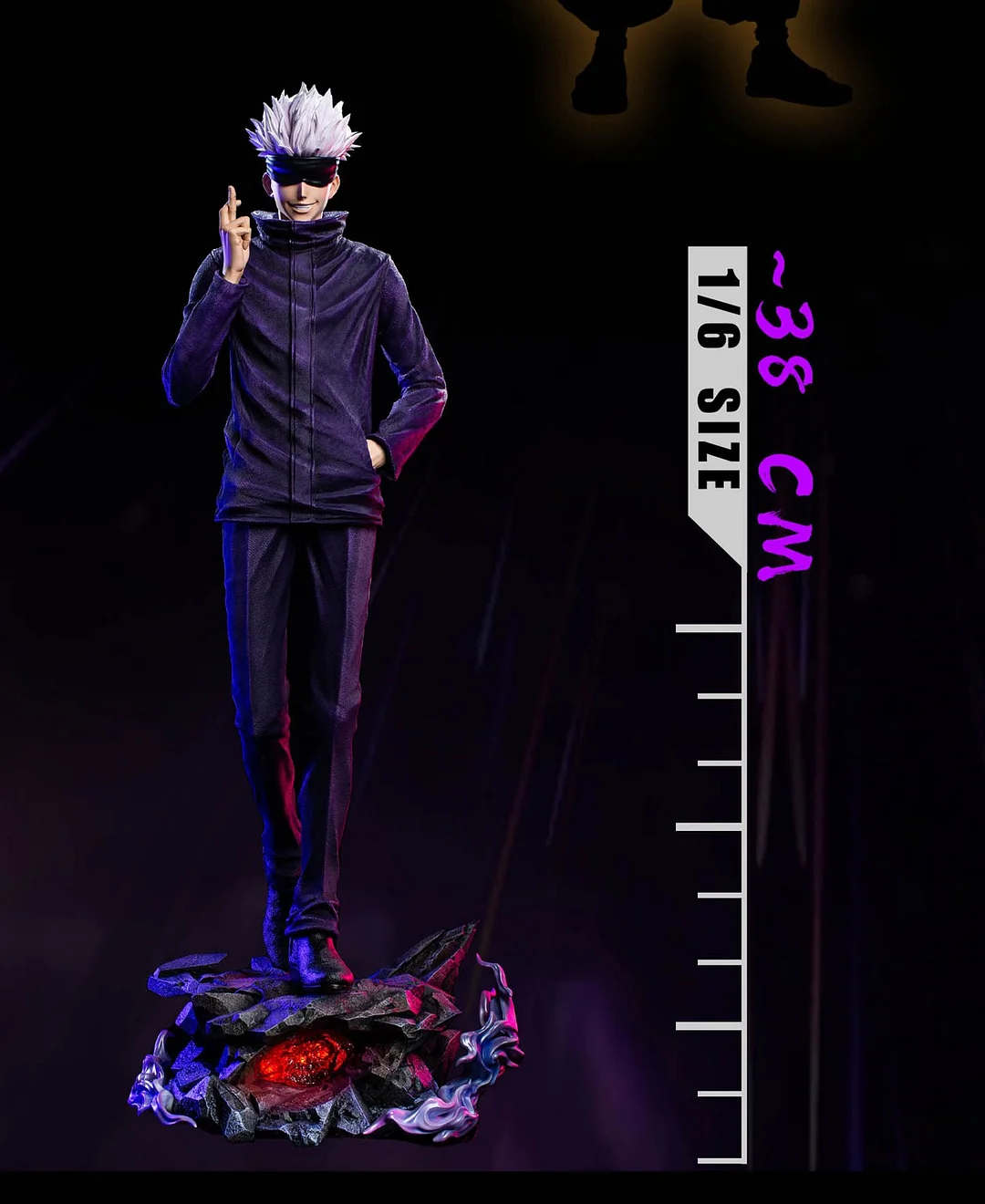 - Ver. B:Includes Character + Base with LED + Six Eyes Head Carving + Sunglasses.