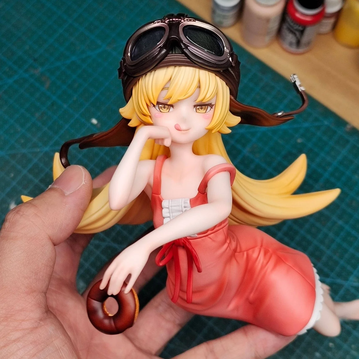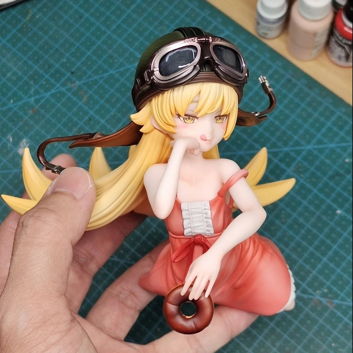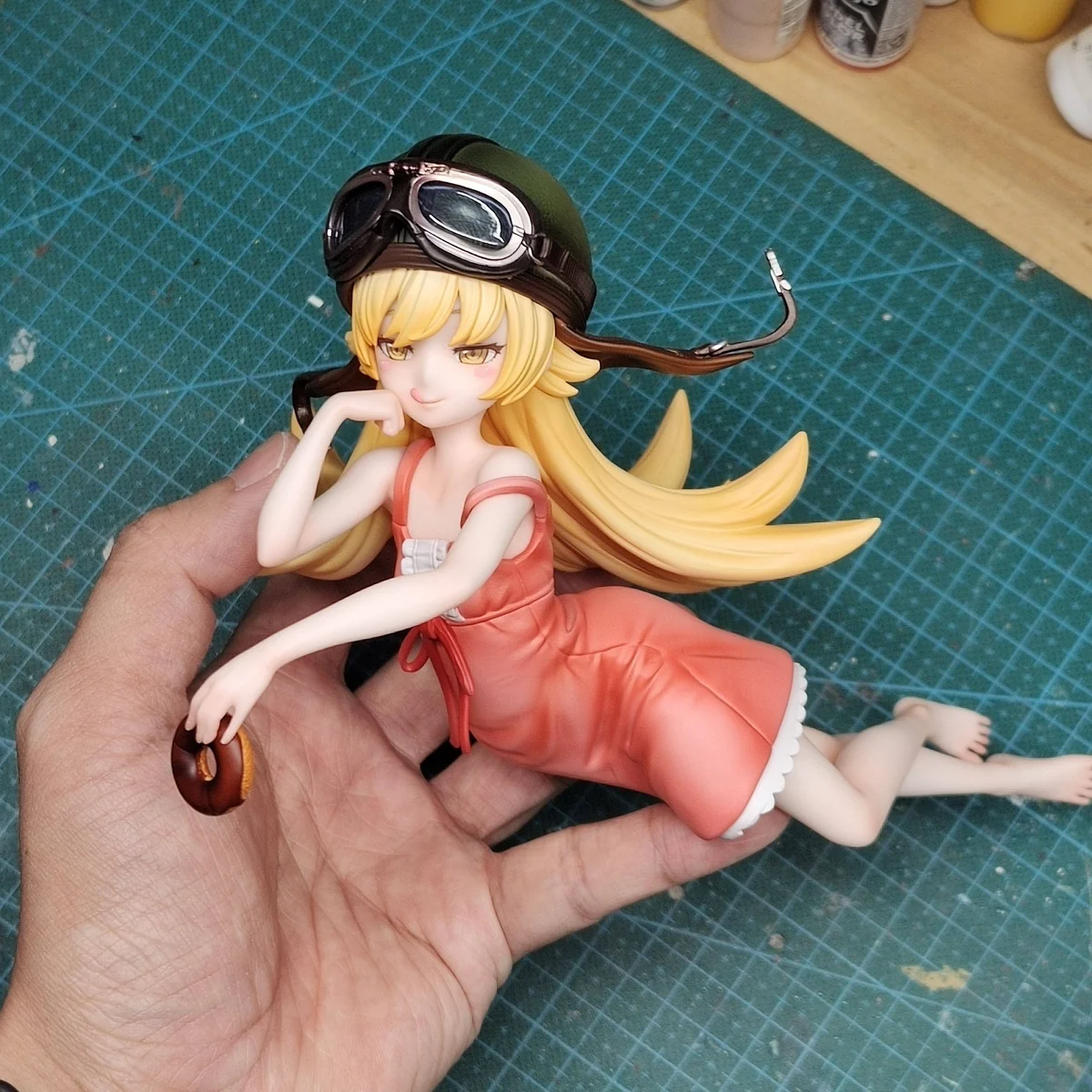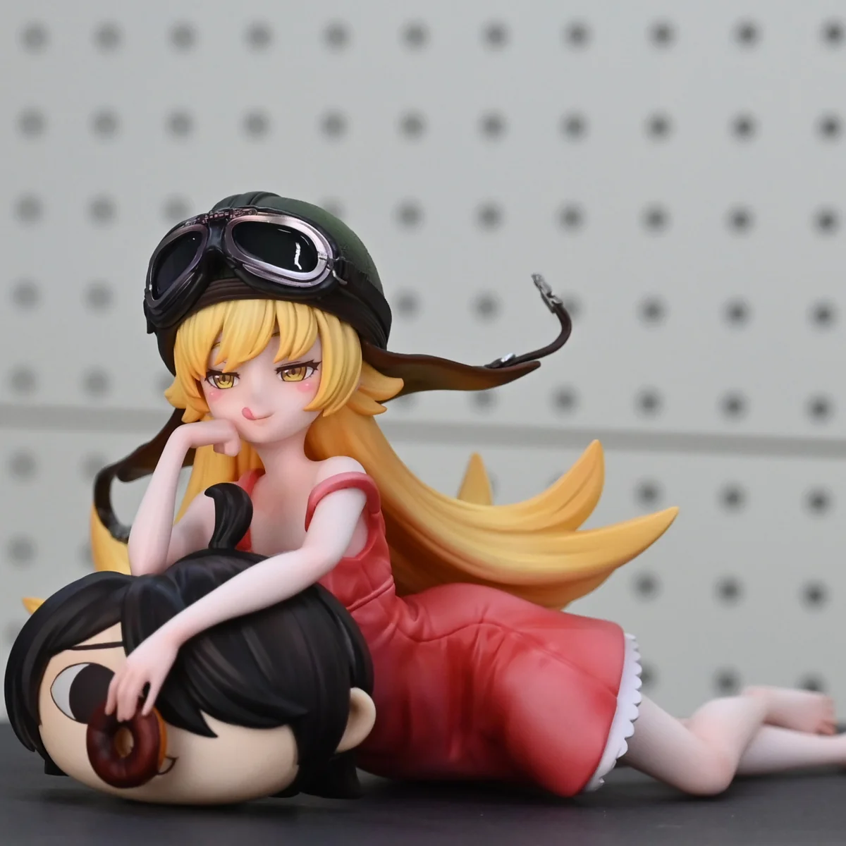 - Includes: Oshino Shinobu main body, non-removable motorcycle helmet, and Koyomi Araragi plush pillow.