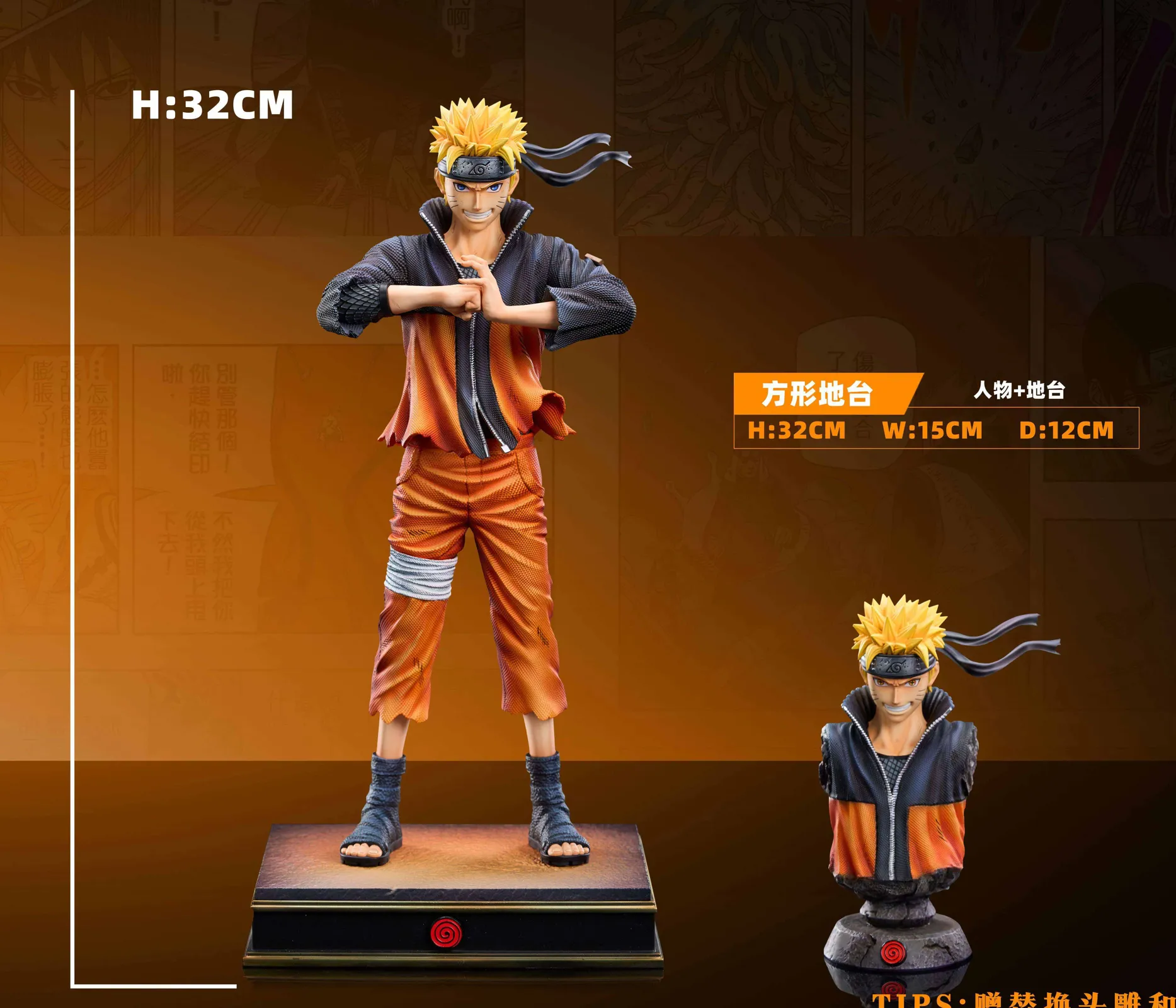 - Naruto. Square: H32 * W15 * D12cm Estimated; Summoning Base: H63 * W45 * D45cm Estimated; Limited to 188pcs in TOTAL