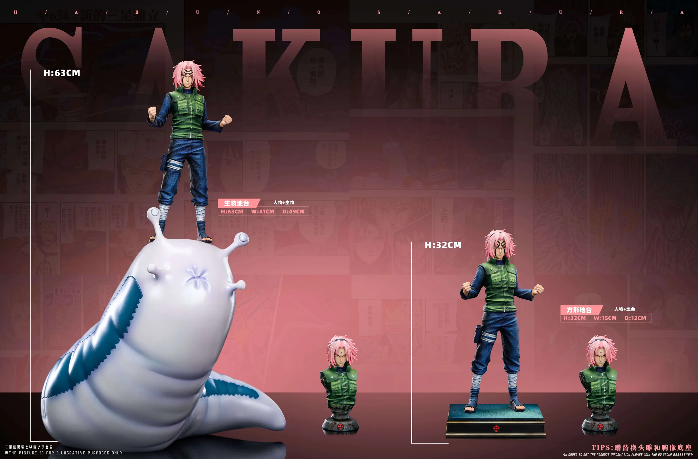 - Sakura. Square: H32 * W15 * D12cm Estimated; Summoning Base: H63 * W41 * D49cm Estimated; Limited to 188pcs in TOTAL