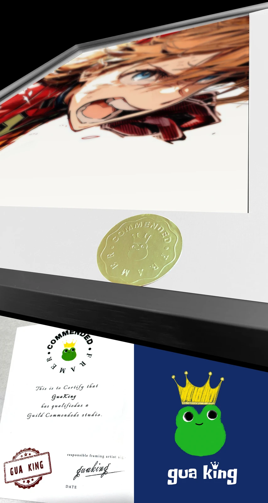 - Art Paper + Aluminum Alloy Frame + Oil Ink Quality + Hand-written Gold Numbering.
