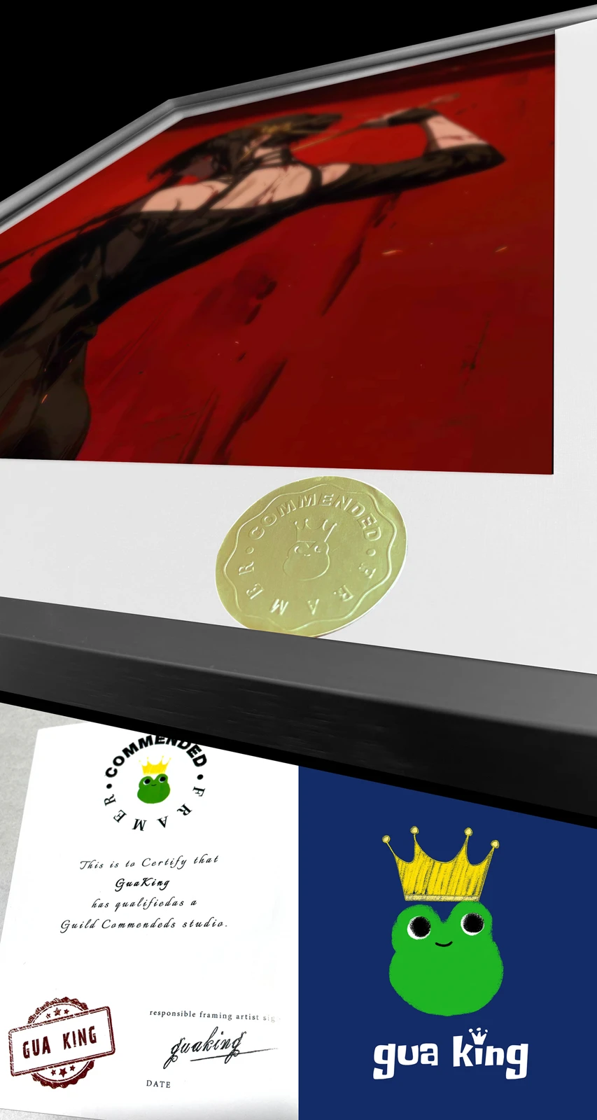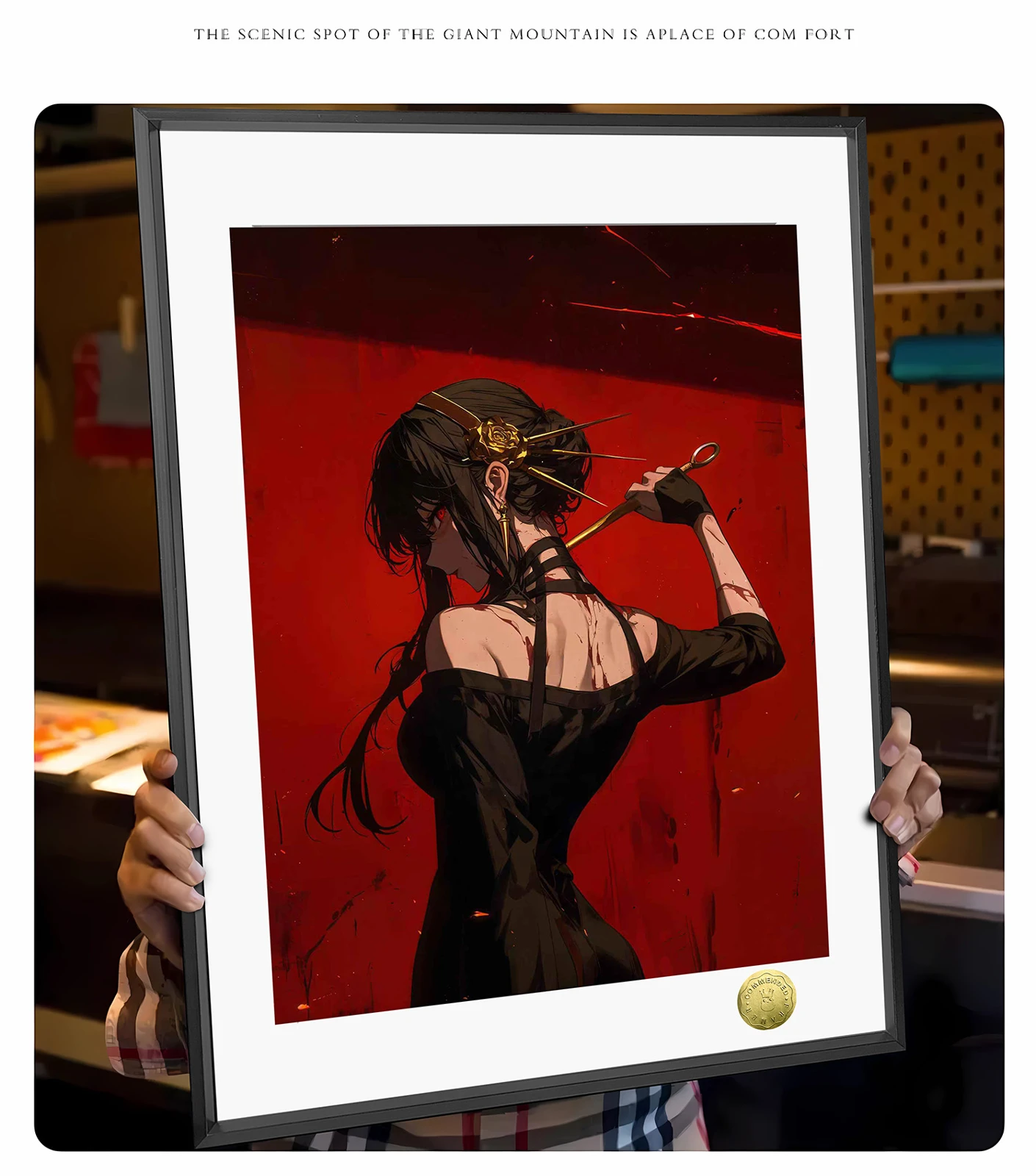 - Art Paper + Aluminum Alloy Frame + Oil Ink Quality + Hand-written Gold Numbering.
