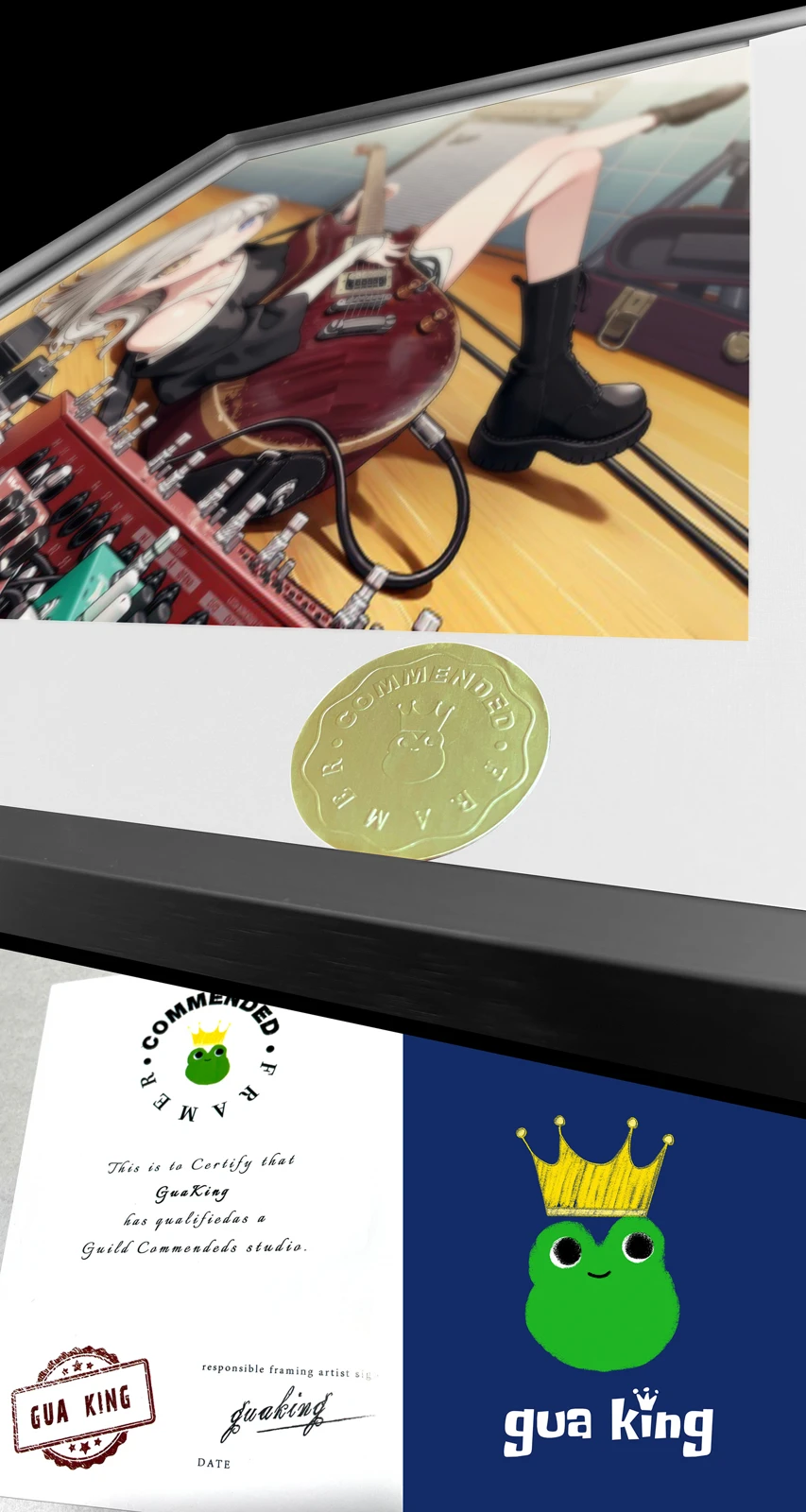 1. Art Paper + Aluminum Alloy Frame + Oil Ink Quality + Hand-written Gold Numbering.