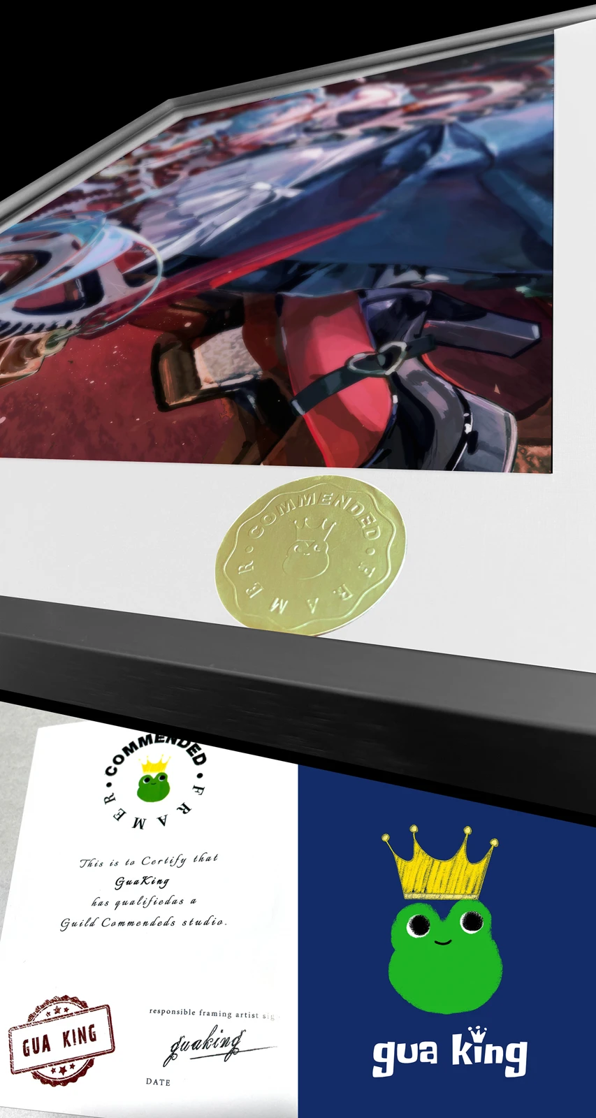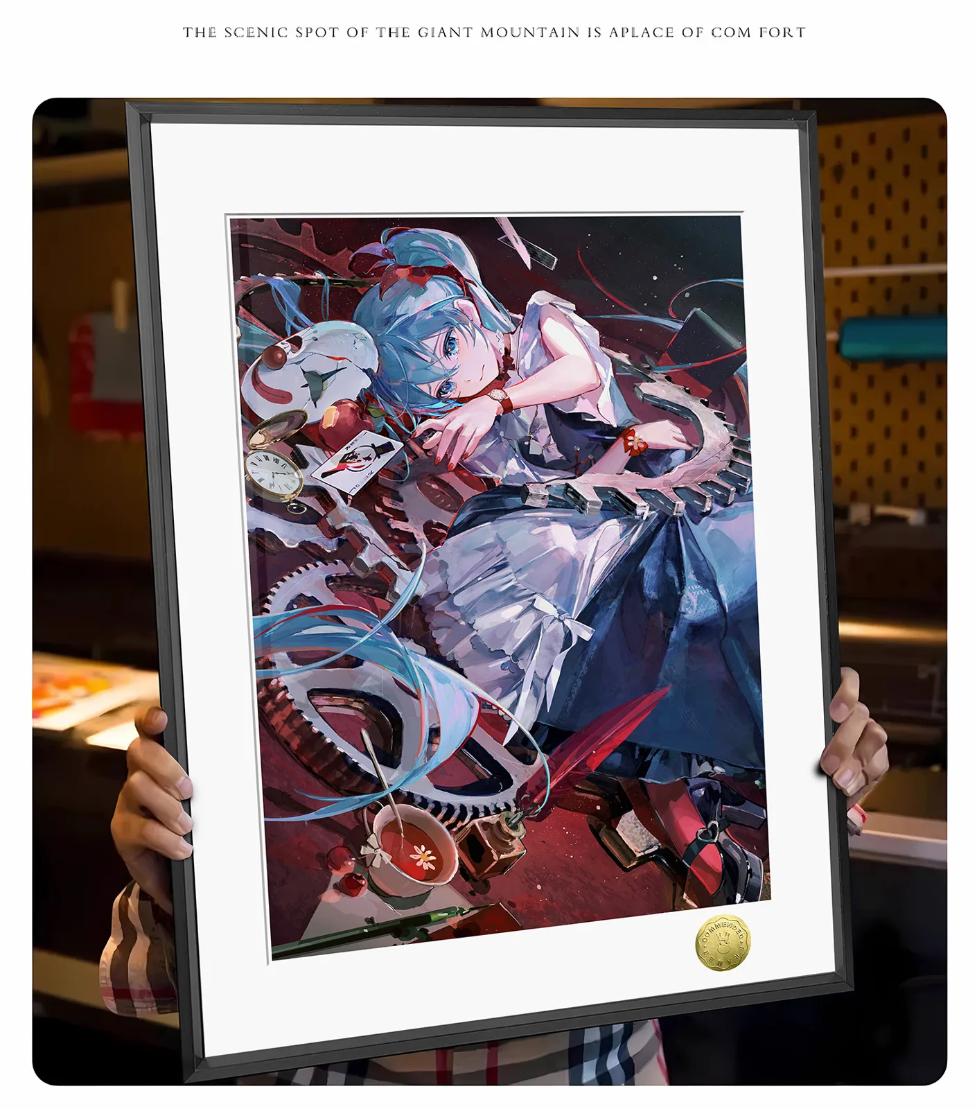- Art Paper + Aluminum Alloy Frame + Oil Ink Quality + Hand-written Gold Numbering.