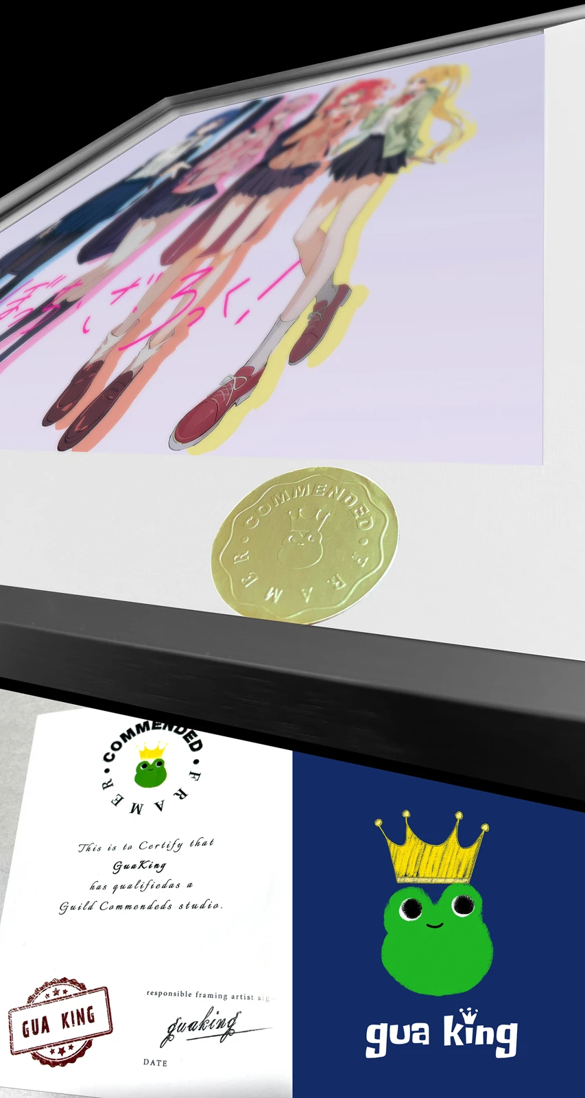 1. Art Paper + Aluminum Alloy Frame + Oil Ink Quality + Hand-written Gold Numbering.