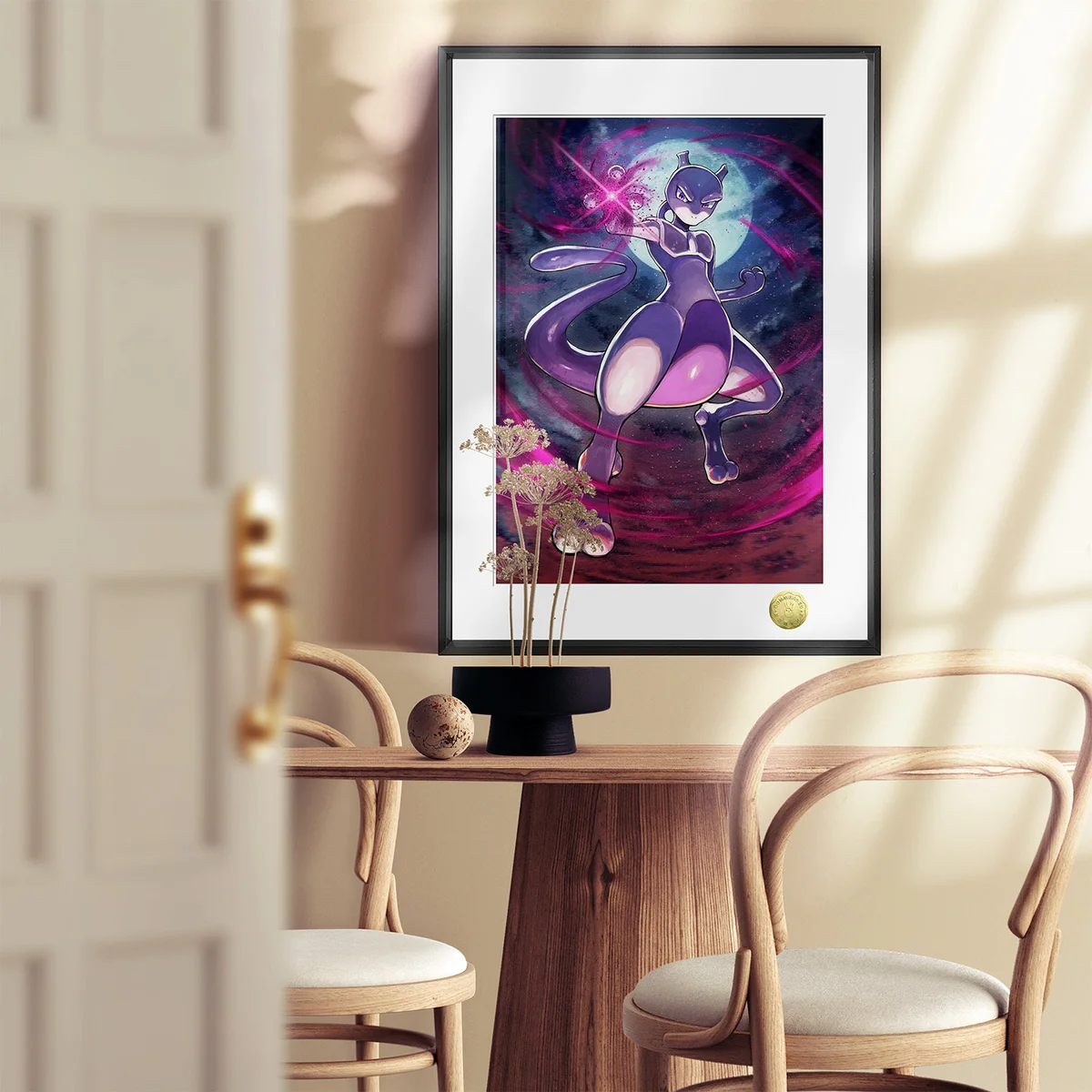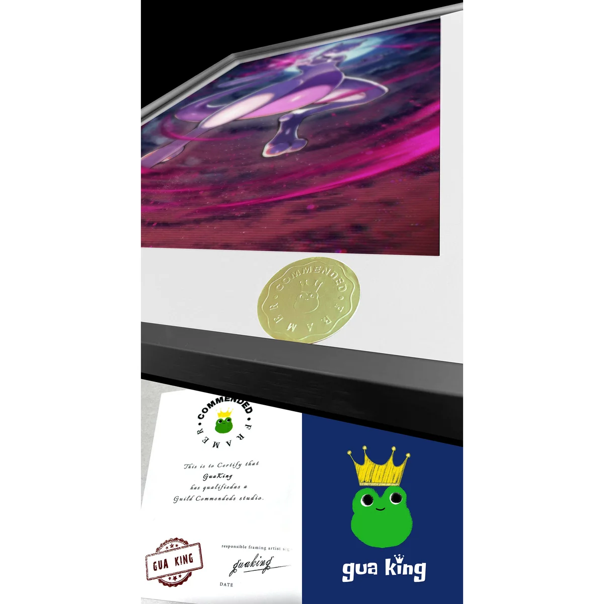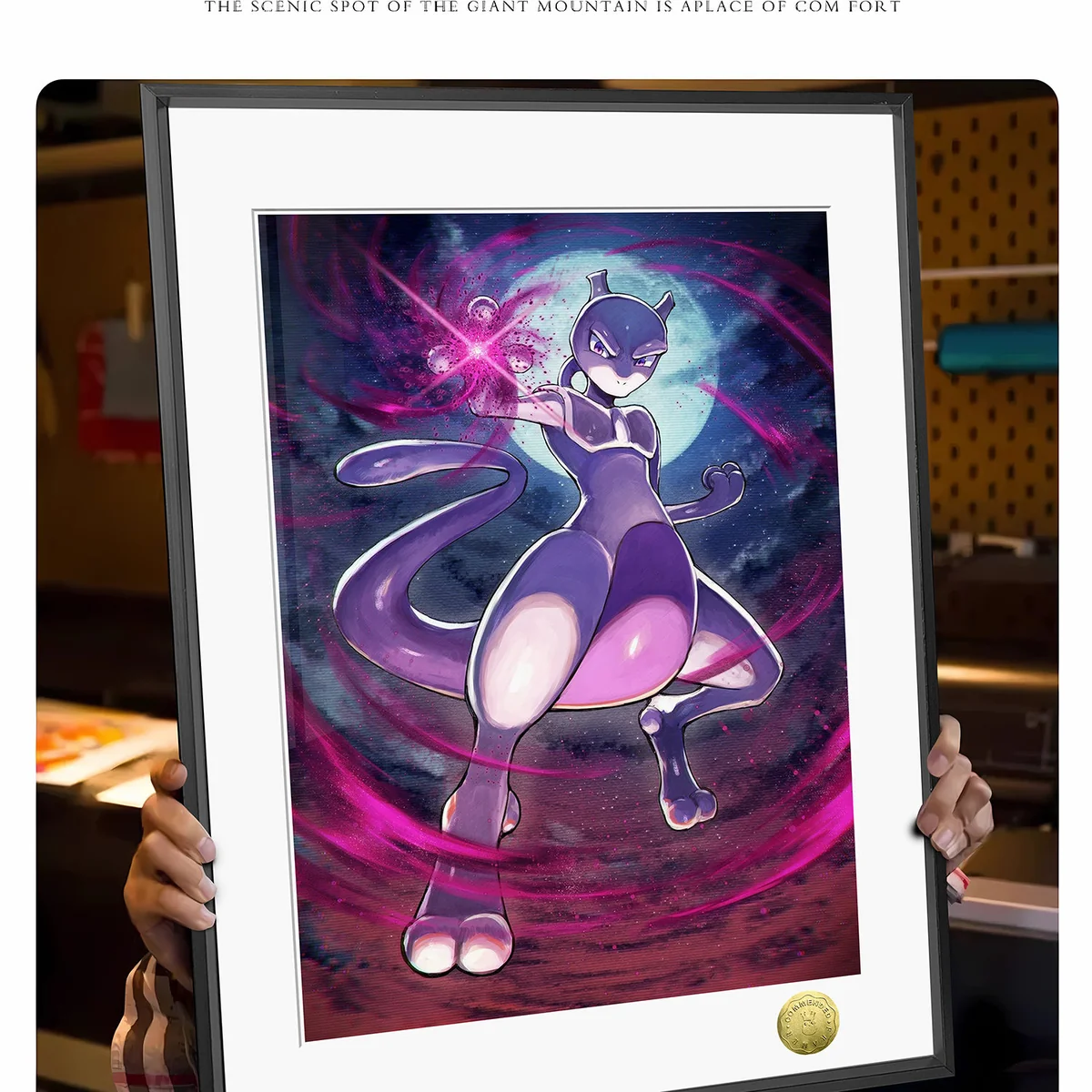 Premium framed Mewtwo Pokemon art print, dynamically capturing its intense psychic presence and power. This limited edition painting is a high-quality painting.Premium, limited edition Mewtwo Art Print by HuangGua Studio. Gallery views showcase the framed Pokemon painting's dynamic psychic power and intricat.Premium framed limited edition Mewtwo Pokemon art print. Dynamic, intense psychic power shown from multiple angles, highlighting exquisite details.Premium framed Mewtwo decorative painting detail. Limited edition Pokémon art print capturing Mewtwo's intense psychic power and dynamic presence.payment