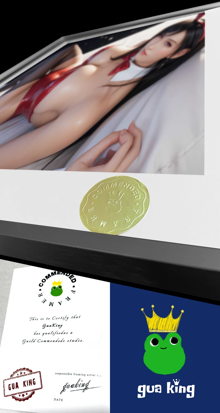 1. Art Paper + Aluminum Alloy Frame + Oil Ink Quality + Hand-written Gold Numbering.