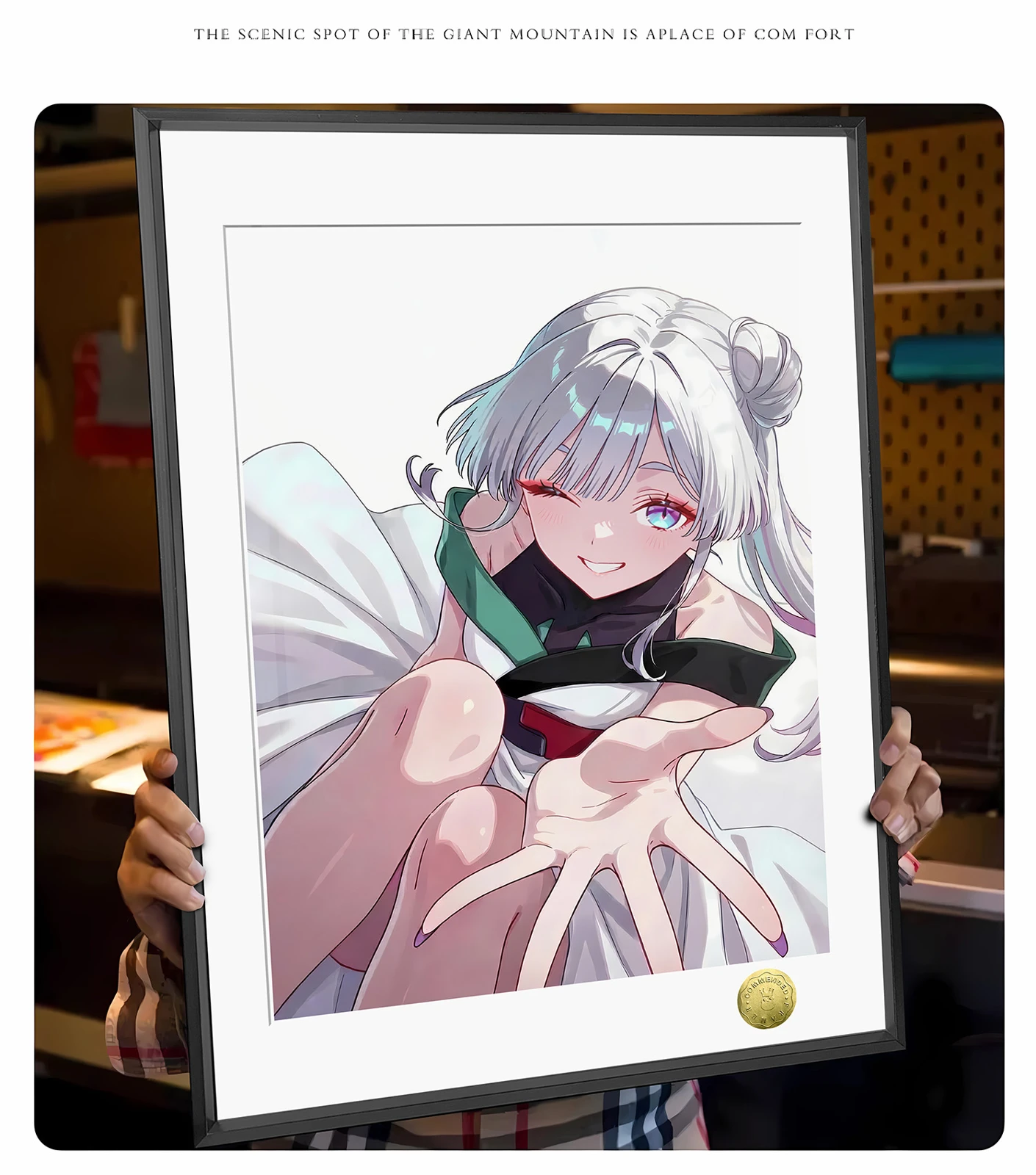 - Art Paper + Aluminum Alloy Frame + Oil Ink Quality + Hand-written Gold Numbering.