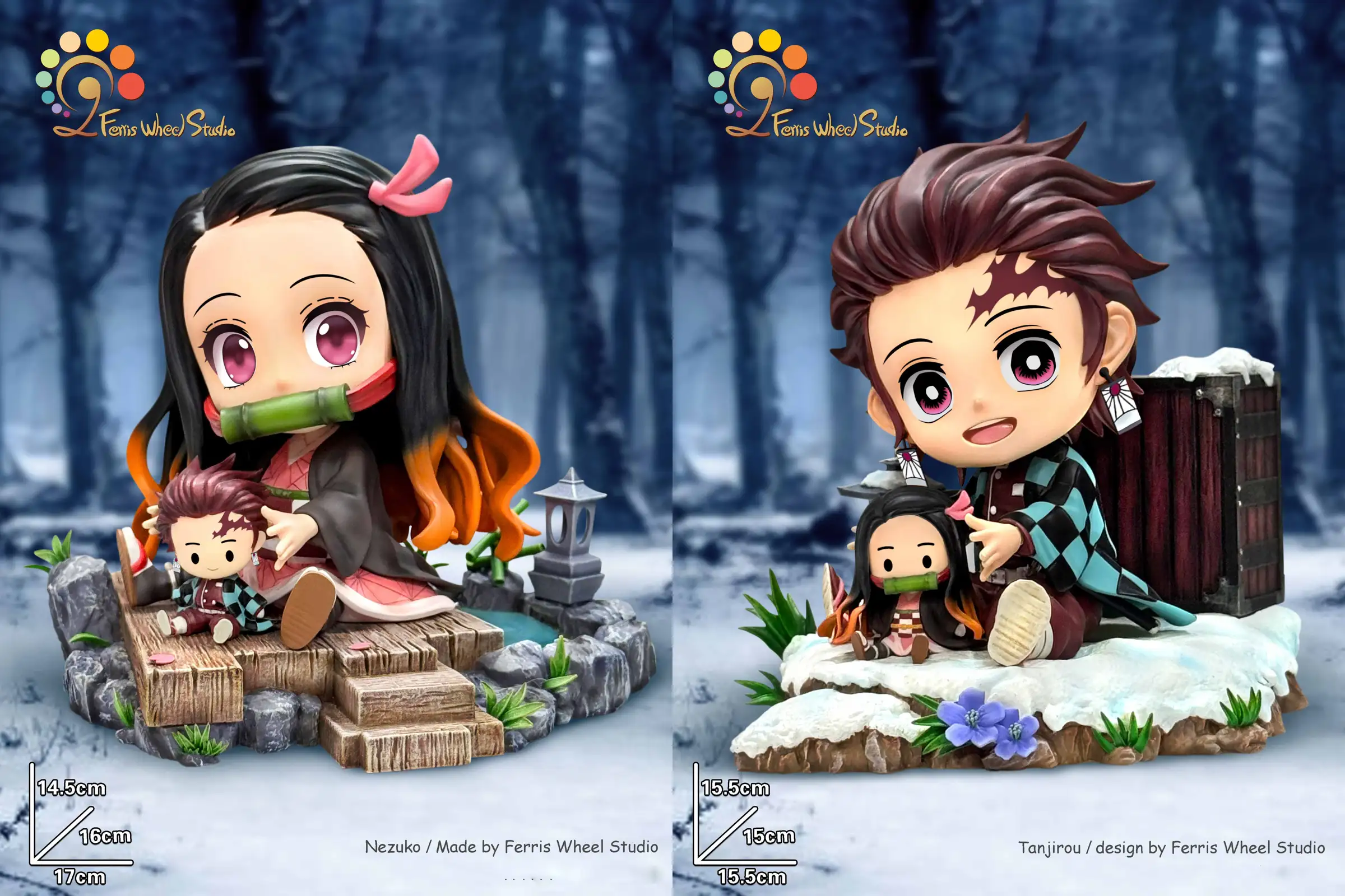 - Tanjiro: H15.5 * W15 * L15.5cm Estimated