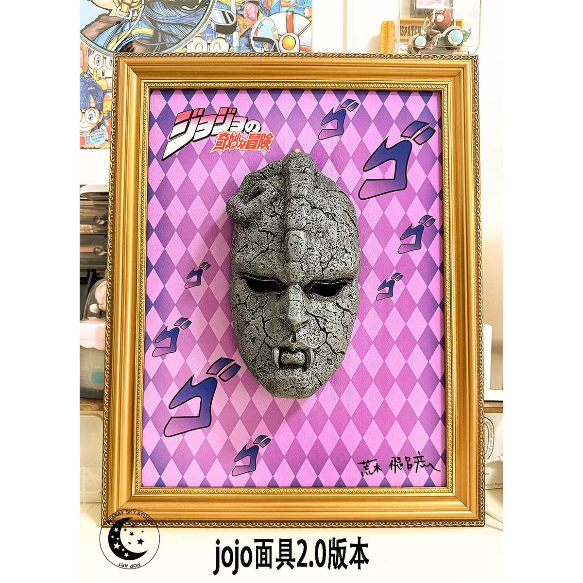 - Encased in a luxurious golden European-style solid wood frame, meticulously chosen to complement the distinct aesthetic of JoJo’s Bizarre Adventure.